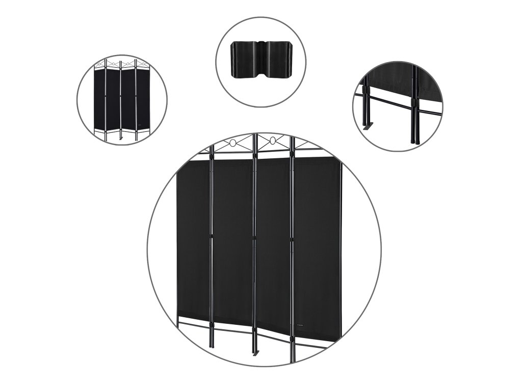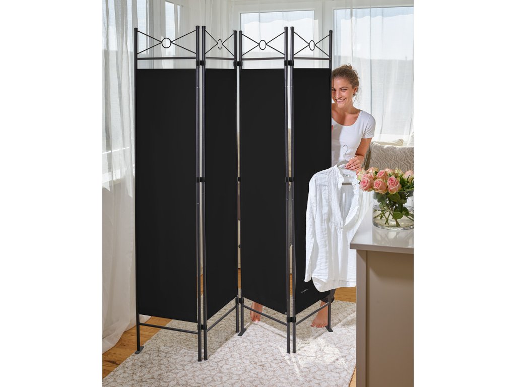 4-panelový paraván - čierny
