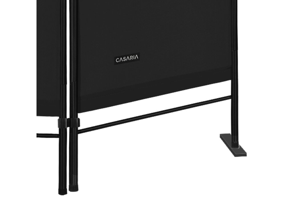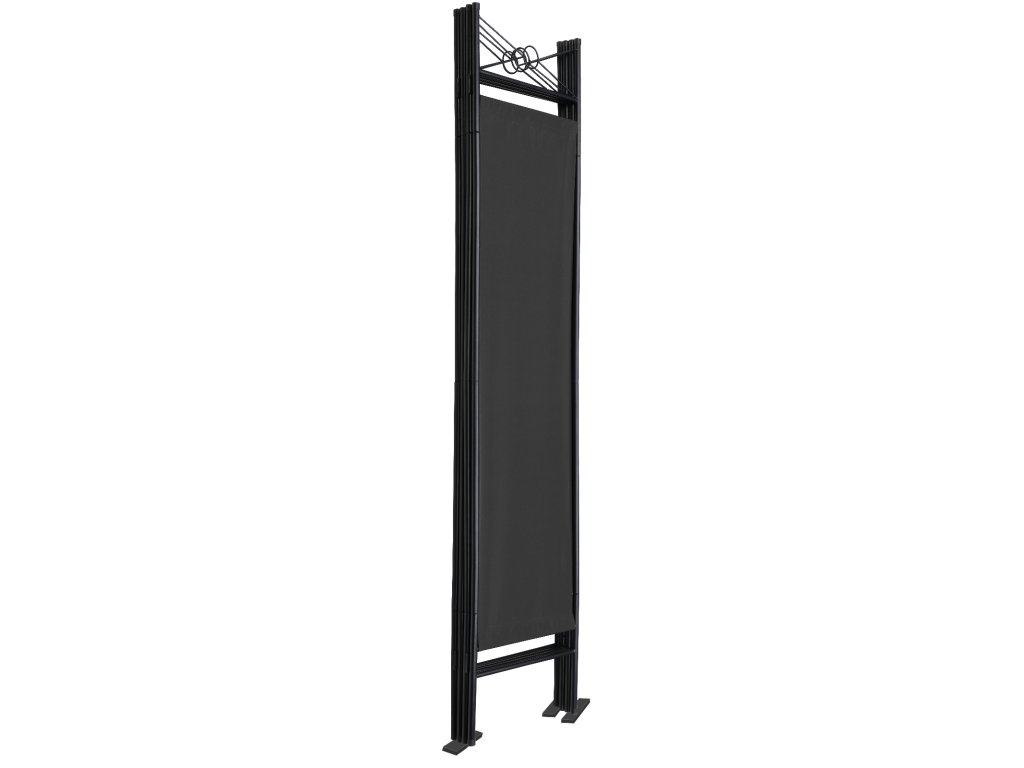 Robustná, nepriehľadná tkanina spoľahlivo chráni pred zvedavými pohľadmi, pričom čierne kované detaily nádherne dopĺňajú samostatne stojací a nastaviteľný paraván. Paraván je ideálny ako predeľovač miestnosti, ochrana súkromia či už v obývačke, jedálni, kuchyni, spálni, alebo dokonca ako dekorácia na záhrade. Vďaka pevnému oceľovému rámu je mimoriadne stabilný. Plastové nožičky chránia podlahu pred nežiaducimi škrabancami. V prípade potreby sa látkový poťah dá jednoducho zložiť pomocou suchého zipsu a vyprať na 30 °C. Paraván je možné rýchlo a jednoducho zmontovať a demontovať vďaka jednoduchému zásuvnému systému.