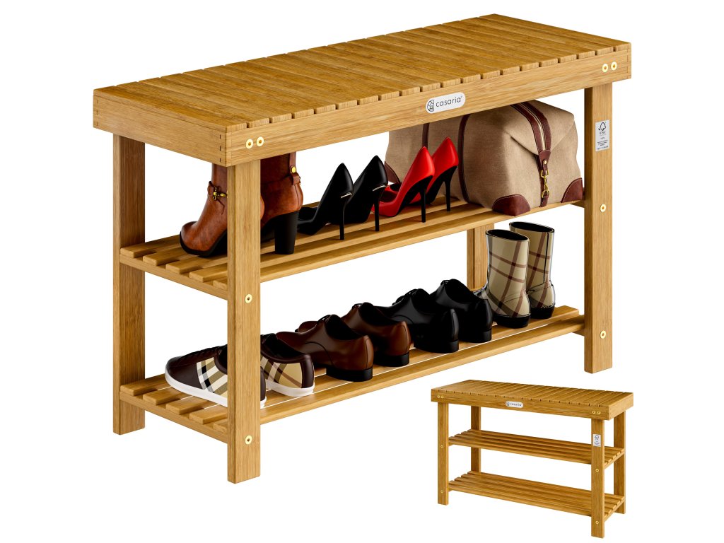 Stojan na topánky z agátového dreva -2 úrovne