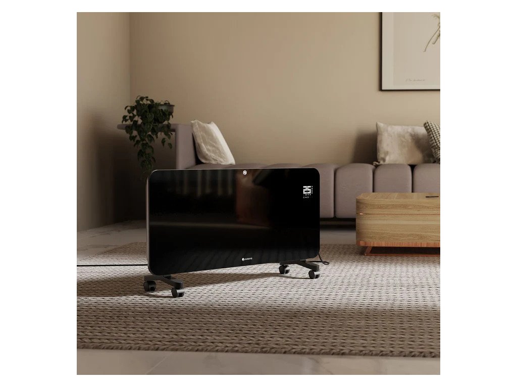 Elektrický ohrievač je vybavený ochranou proti prehriatiu a vďaka krytiu IP24 je vhodný aj do miestností so zvýšenou vlhkosťou. Odolné tvrdené sklo zaručuje dlhú životnosť a elegantný vzhľad v modernom interiéri.