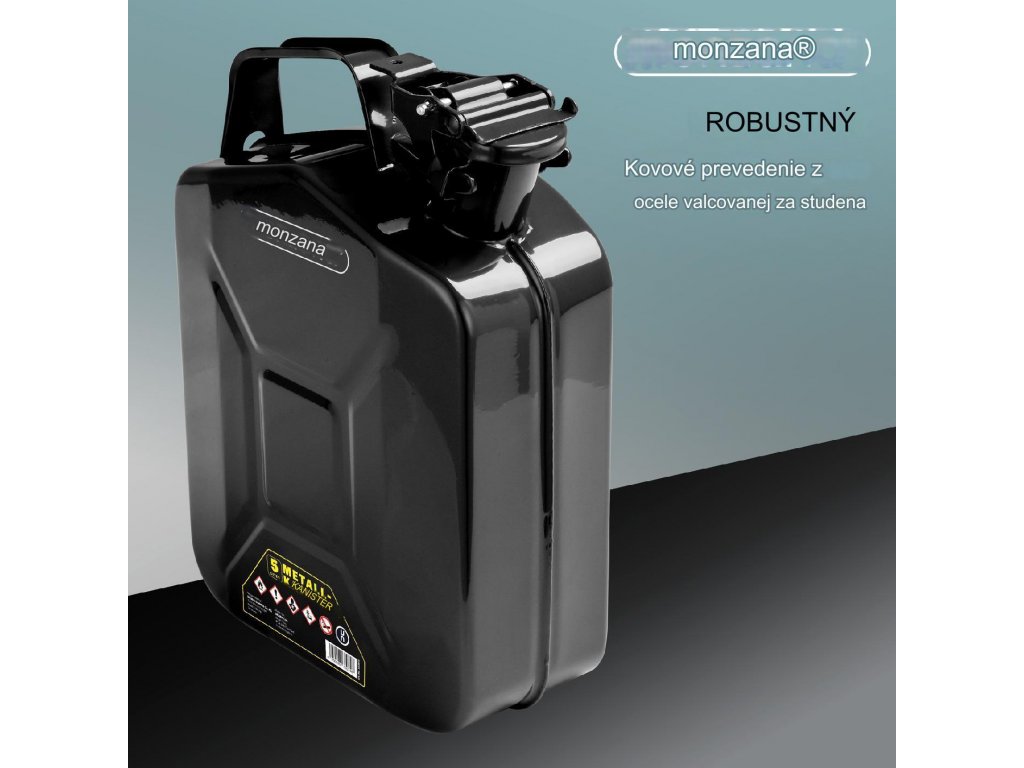 Kovový kanister má schválenie OSN na prepravu v súlade s predpismi o nebezpečných nákladoch a je vhodný pre všetky druhy palív (benzín, nafta, olej atď.). Či už ide o prepravu, skladovanie alebo dodávku, kanister ponúka spoľahlivé a nákladovo efektívne riešenie. Kovové prevedenie vyrobené z ocele valcovanej za studena robí nádobu veľmi robustnou a zabraňuje deformácii pri nalievaní. Aby sa predišlo vnútornemu hrdzaveniu, nádoba je potiahnutá alkydovo-amoniakovým lakom odolným voči benzínu. Bezpečnostná spona pripevnená k veku zaisťuje spoľahlivé zatváranie. Nalievacie hrdlo, ktoré je súčasťou súpravy, vám umožní jednoduchšie prečerpávanie paliva.