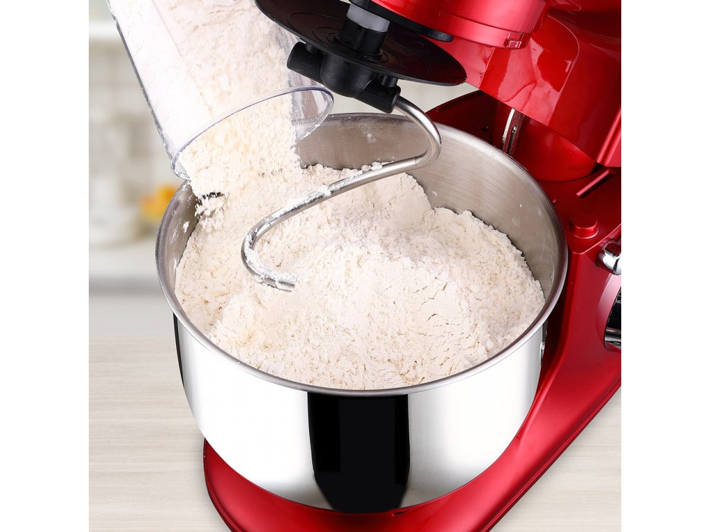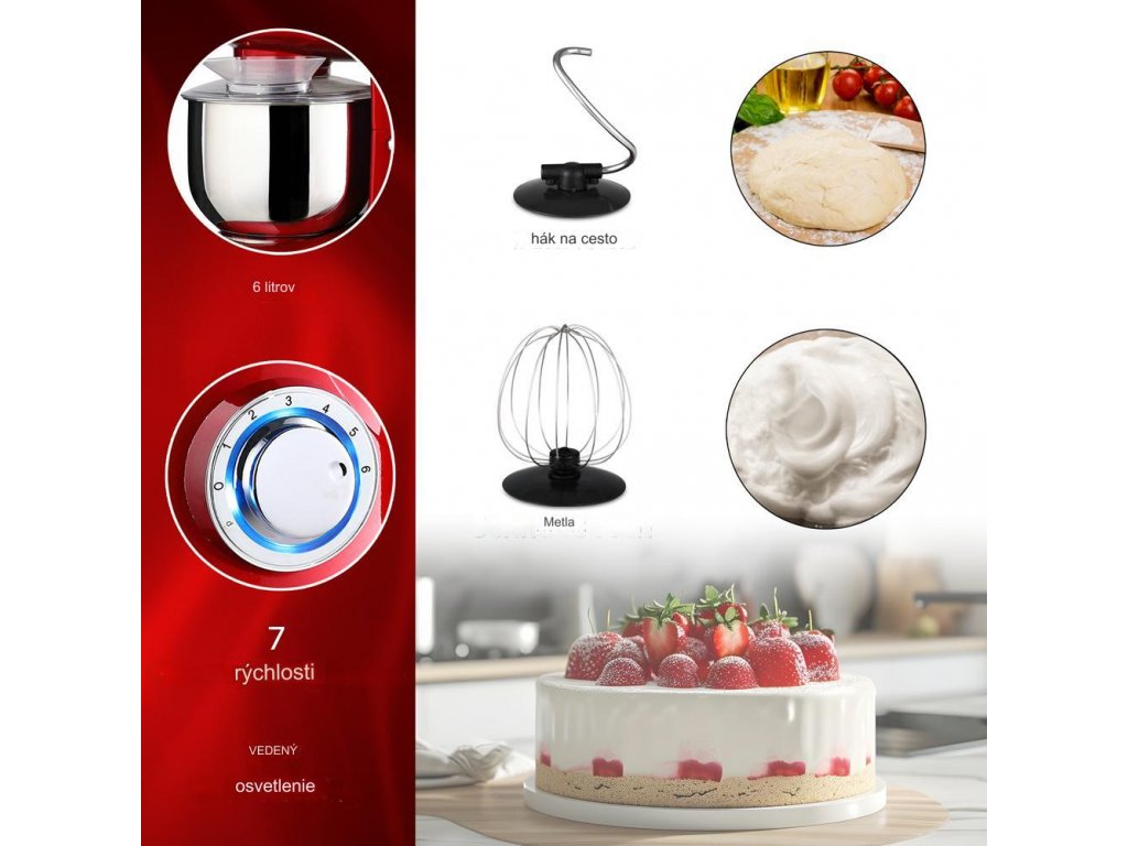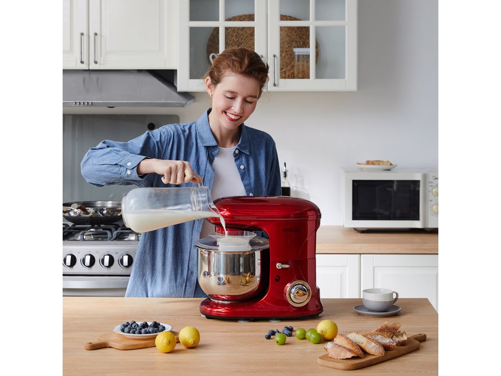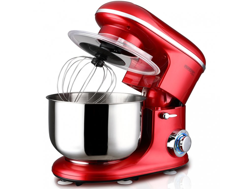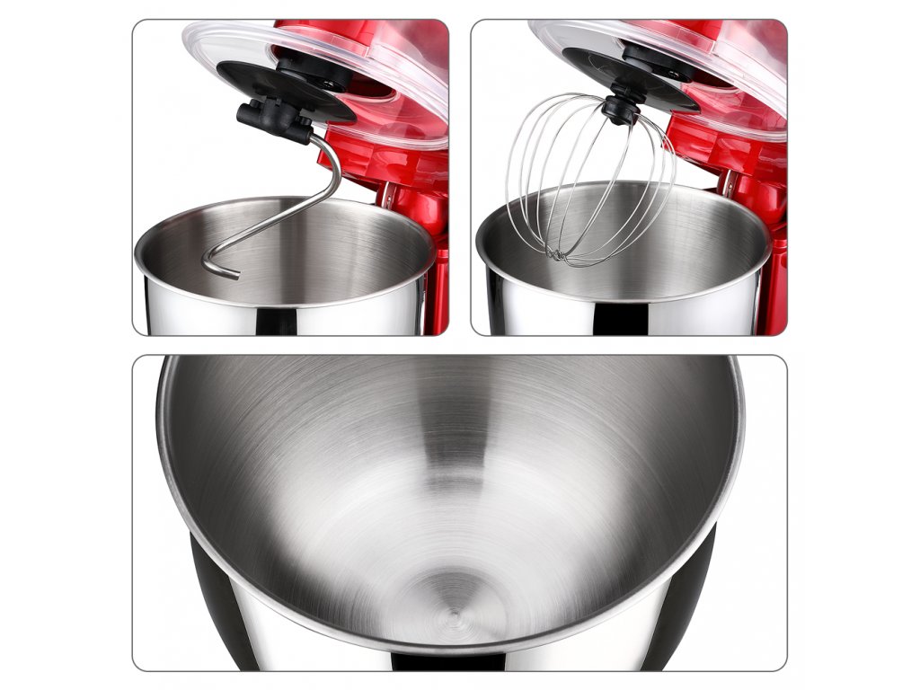 Kuchynský robot s nerezovou nádobou na mixovanie s objemom 6 litrov a 7 rýchlostnými stupňami ponúka všetko, čo potrebujete na miešanie, miesenie a mixovanie bez námahy. Súčasťou balenia sú nerezové nadstavce ako je flexibilná metla a hák na cesto na ťažšie zmesi ktoré sú vhodné do umývačky riadu. Planetárny systém miešania zaisťuje ideálnu kvalitu miesenia. Zmes sa neustále tlačí do stredu a mieša sa rovnomerne. Prístroj disponuje aj pulznou funkciou.