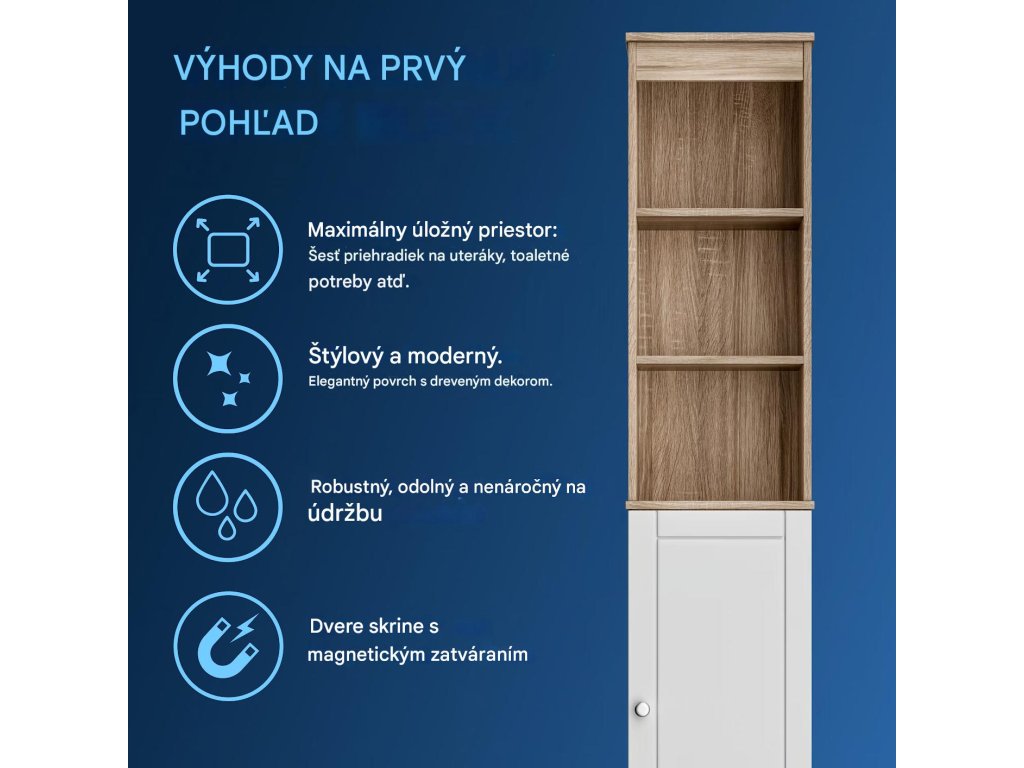 - Rozmer skrinky: 170x34x26 cm (VxŠxH)