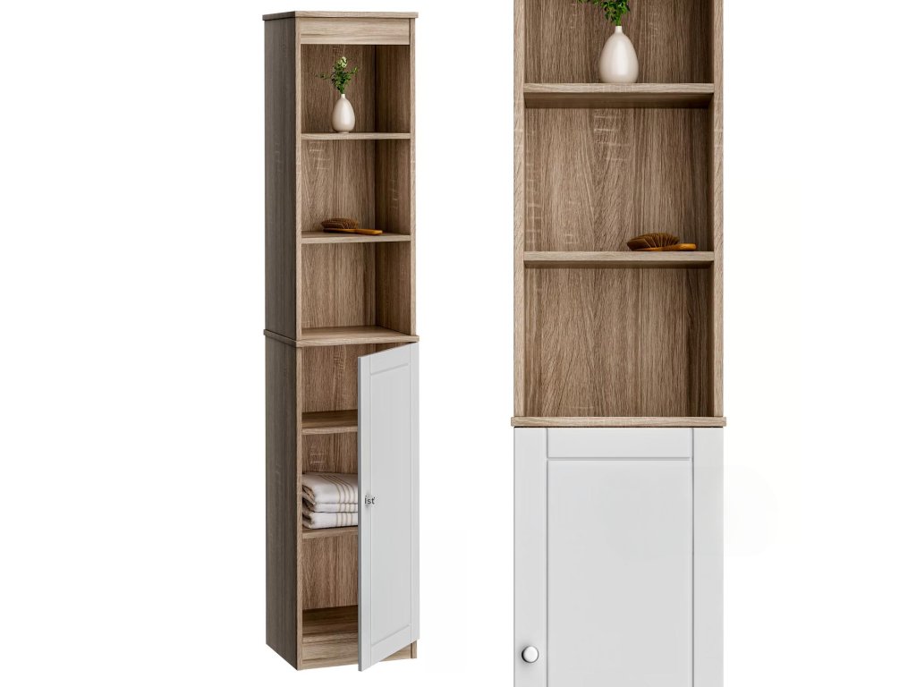 Vďaka svojmu jednoduchému a elegantnému dizajnu je skrinka vhodná nielen do kúpeľne, ale aj do predsiene, kancelárie alebo hosťovskej izby. Môže slúžiť ako praktický úložný priestor na dokumenty, doplnky alebo iné predmety, ktoré chcete mať prehľadne uložené. Vysoký tvar a úzke rozmery umožňujú umiestnenie aj do užších priestorov.