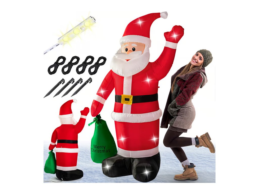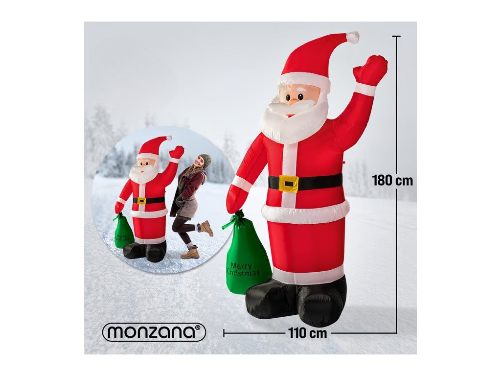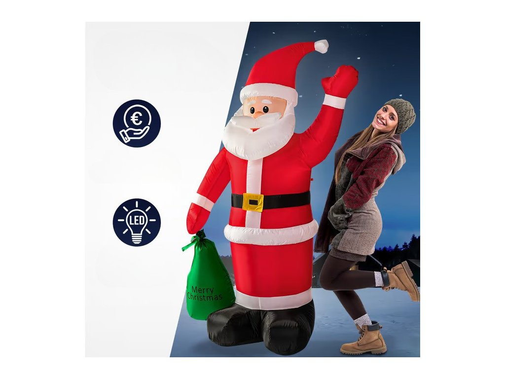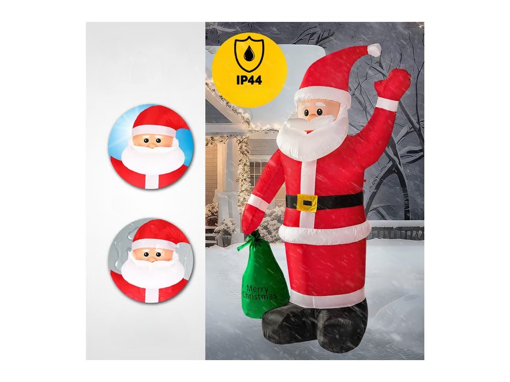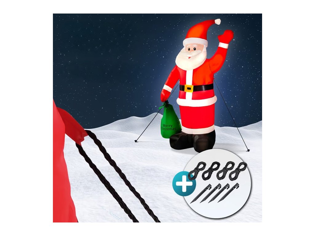 Tento veselý nafukovací Mikuláš je ideálnou vianočnou ozdobou pre váš dom či záhradu. Vďaka šiestim zabudovaným LED diódam vytvára príjemné svetlo a navodí tú pravú sviatočnú atmosféru. Mikuláš je určený na vnútorné aj vonkajšie použitie a jednoducho sa nafukuje pomocou priloženej elektrickej pumpy. Na bokoch sa nachádzajú očká na uchytenie, ktoré spolu s integrovaným vreckom s pieskom zabezpečujú stabilitu a vzpriamenú polohu. V prípade potreby možno do spodnej časti prostredníctvom zipsu pridať ďalšie závažia. Aby Mikuláš zostal vzpriamený, je potrebné, aby čerpadlo neustále prefukovalo vzduch. Z tohto dôvodu musí byť počas prevádzky stále pripojené k elektrickému napájaniu.Výhody produktu: