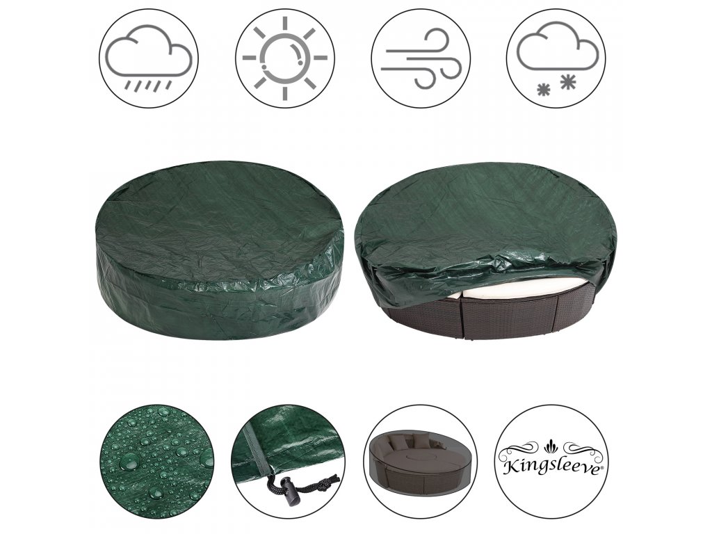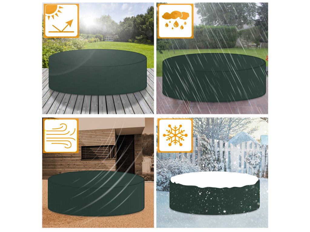 Zabezpečte svoj záhradný nábytok pred nepriaznivým počasím pomocou kvalitného ochranného krytu. Tento odolný kryt spoľahlivo chráni pred dažďom, prachom, nečistotami aj UV žiarením. Kryt je vyrobený z pevného materiálu, ktorý je odolný proti roztrhnutiu, pričom zosilnené dvojité švy zvyšujú jeho životnosť aj na najviac namáhaných miestach. Vďaka praktickej sťahovacej šnúrke po obvode ho jednoducho upevníte tak, aby odolal aj silnejšiemu vetru. V prípade znečistenia je možné kryt jednoducho utrieť handričkou.