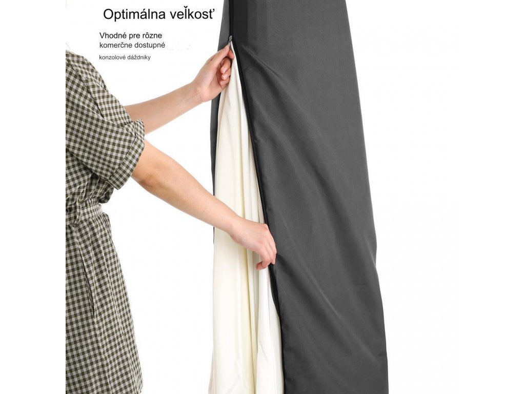 Ochranný kryt na zips vyrobený z polyesteru 160 g/m² ochráni váš slnečník pred vlhkosťou, špinou, mrazom a prachom. Štruktúra materiálu zaisťuje vysokú flexibilitu. V spodnej časti je upevniteľná šnúrka na uzavretie. Kryty sú vhodné pre bežné slnečníky s priemerom 3,5 m.