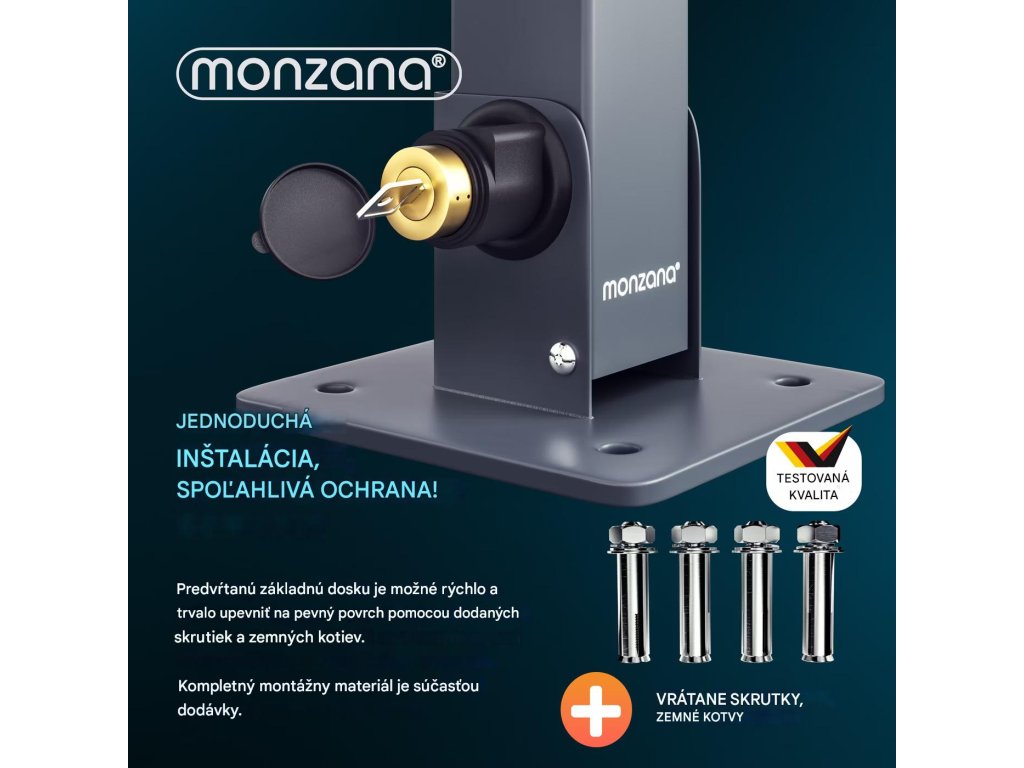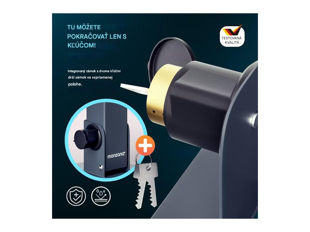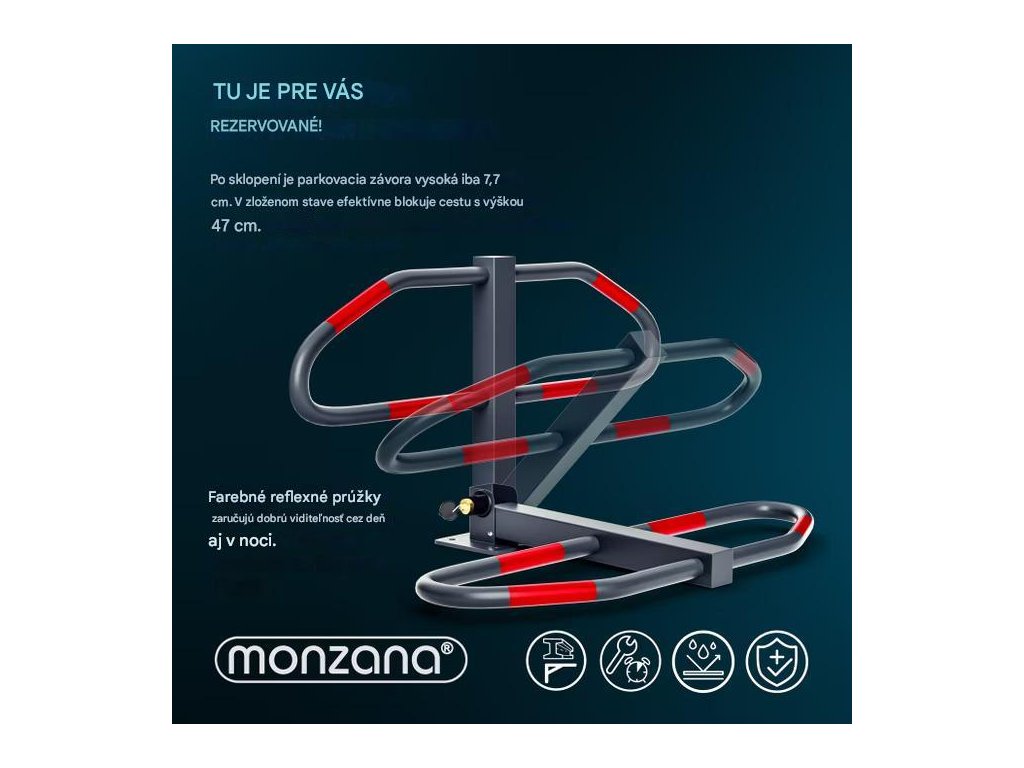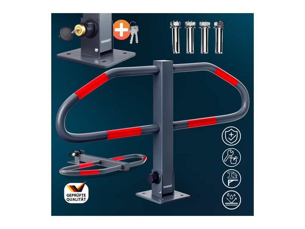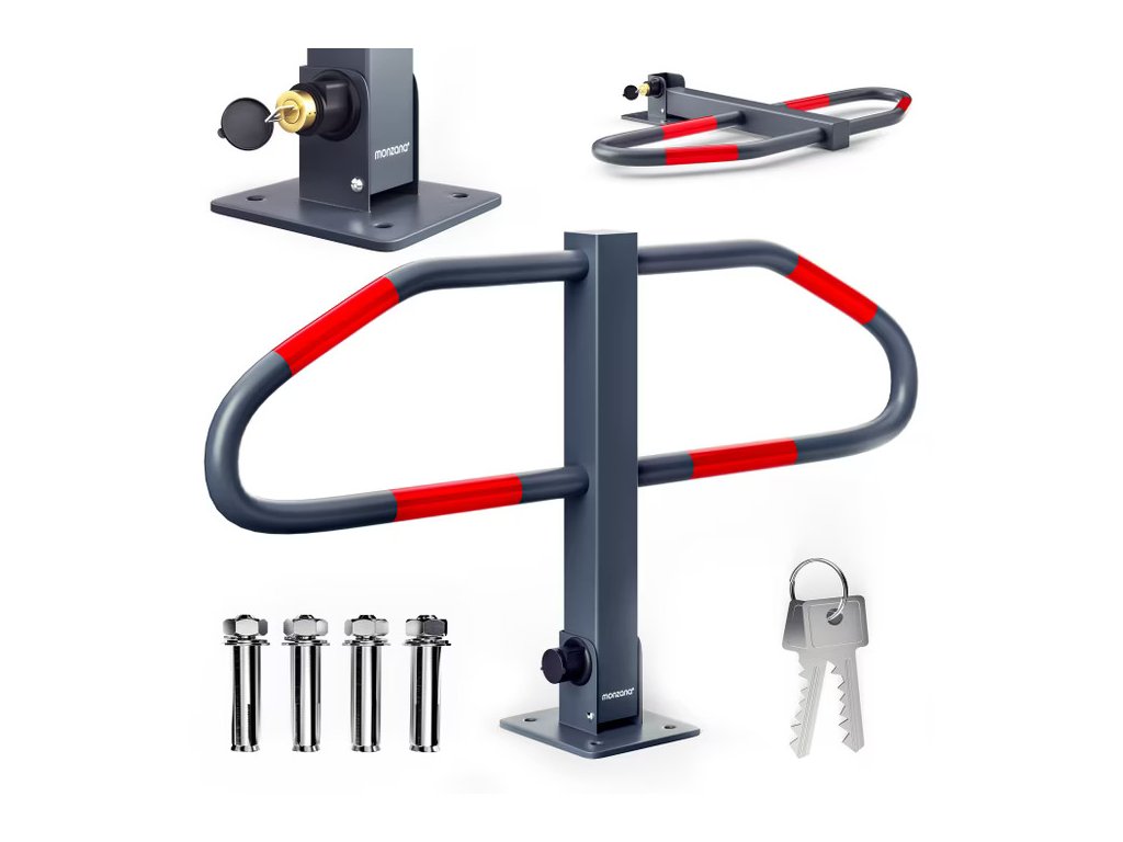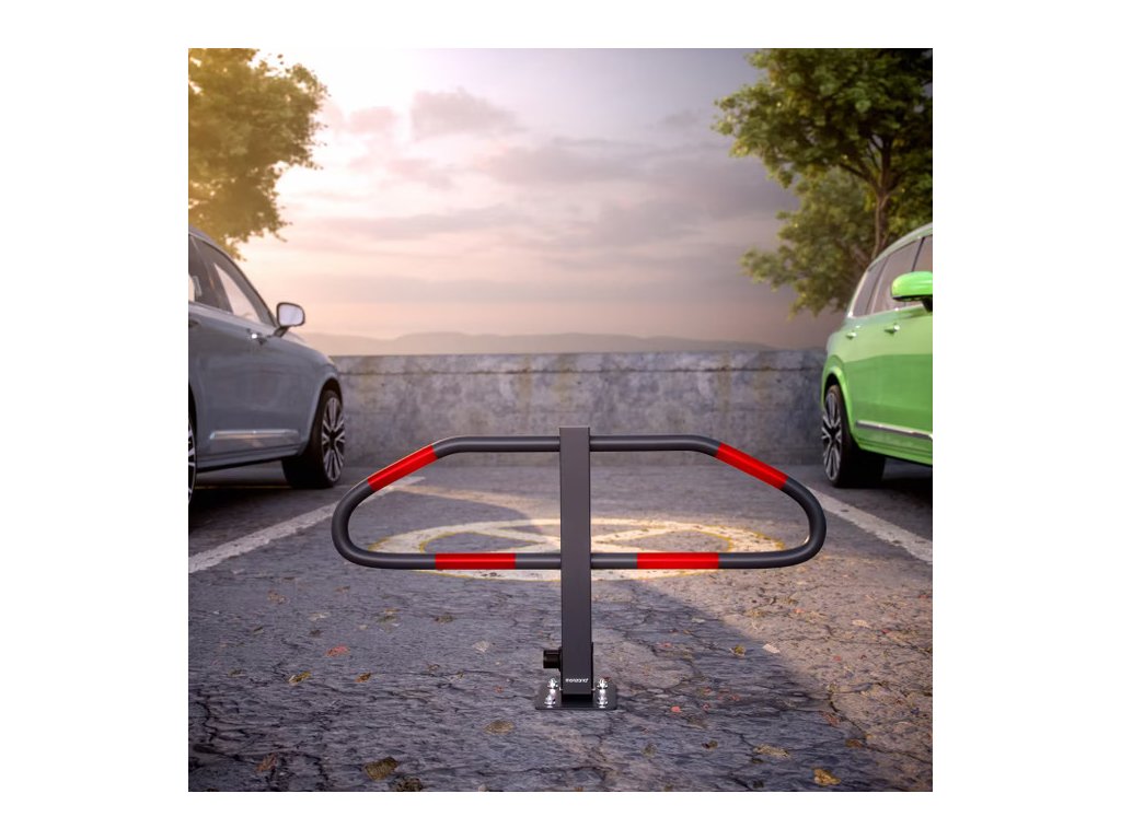 Skladacia parkovacia zábrana vyrobená z robustnej ocele s práškovým nástrekom chráni vaše súkromné parkovacieho miesto. Vďaka červeným reflexným pásikom je stĺpik dobre viditeľný aj v tme. Integrovaný zámok s 2 kľúčmi bráni nelegálnym parkujúcim v jednoduchom preklopení zámku. Máte plnú kontrolu nad tým, kto na vašom parkovisku parkuje. Oceľovú konštrukciu s hmotnosťou 4,6 kg je možné jednoducho priskrutkovať do zeme a následne postaviť.