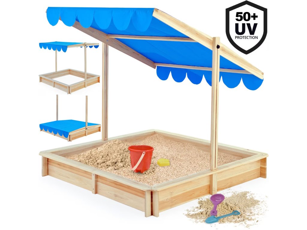 Fantastické pieskovisko s výškovo nastaviteľnou a vodoodpudivou slnečnou strieškou
