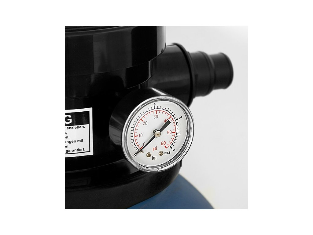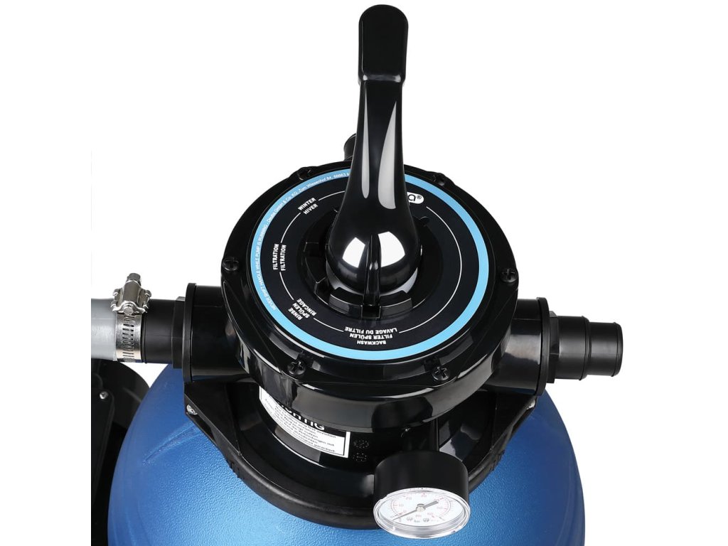 Pieskový filtračný systém SF12K je vybavený rozsiahlym príslušenstvom. Vrchný 7-cestný ventil zaisťuje perfektnú manipuláciu. Pieskový filtračný systém SF12K je vhodný aj pre bazény so slanou vodou. Náš pieskový filtračný systém má veľký objem nádrže cca 25 litrov. Filtračnú nádrž môžete naplniť až 20 kg filtračného piesku. Pieskový filtračný systém je možné naplniť najbežnejšími typmi pieskových filtrov: