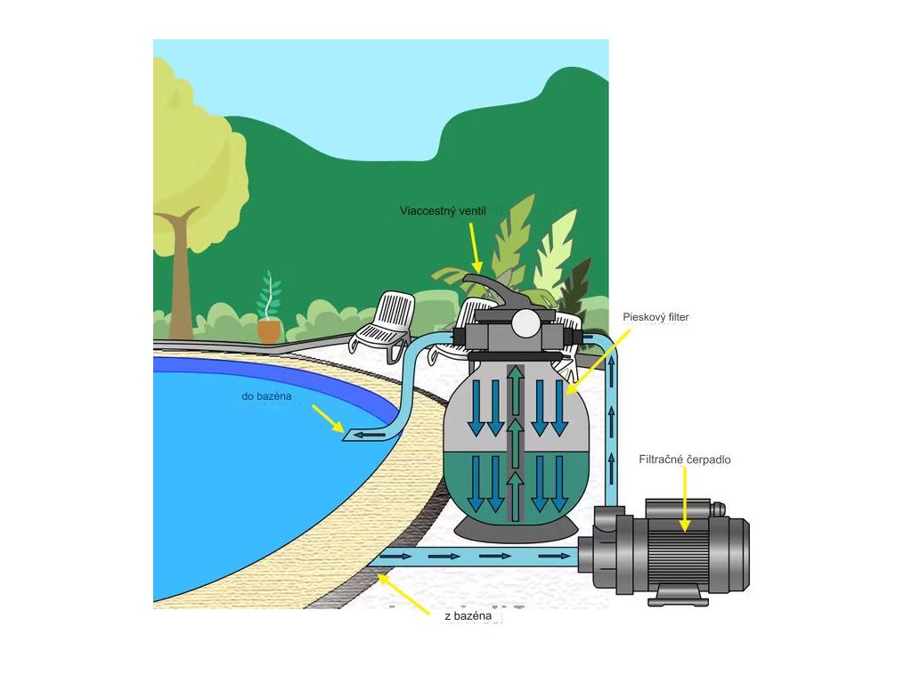 - 1 x pieskový filtračný systém vrátane čerpadla a príslušenstva