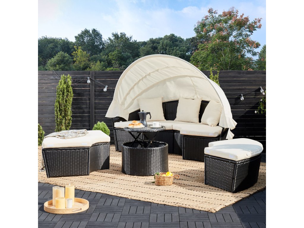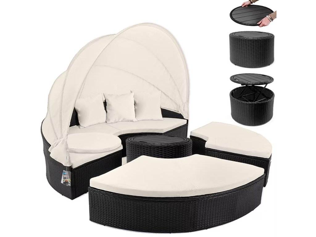 Ratanová záhradná posteľ LAZY Ø185 cm - čierna