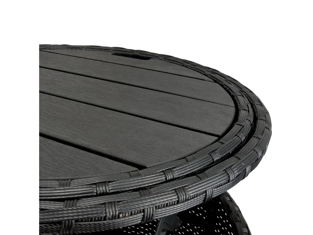 Polyratan je mimoriadne odolný, rovnomerne spletený plastový materiál, ktorý bol špeciálne navrhnutý pre záhradný nábytok. Jeho výhodou je jednoduchá údržba a odolnosť voči nečistotám. Teleskopický stôl WPC je vytvorený z pevného kombinovaného materiálu drevo-plast a jeho rozloženie je veľmi rýchle a nenáročné. Stolová doska zároveň poslúži ako podnos a je vybavená tromi výškovo nastaviteľnými, protišmykovými plastovými nožičkami, ktoré zabezpečujú stabilitu. Stôl má tiež dodatočnú vnútornú polyratanovú výstuž a priestor vo vnútri možno využiť ako úložisko. Odnímateľné poťahy so 7 cm hrubými poduškami na sedadlách odpudzujú vodu a sú ľahko odnímateľné vďaka skrytému zipsu.