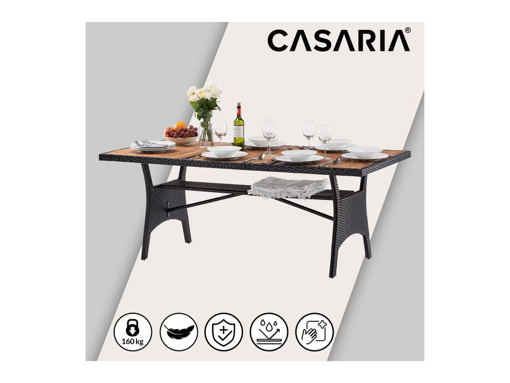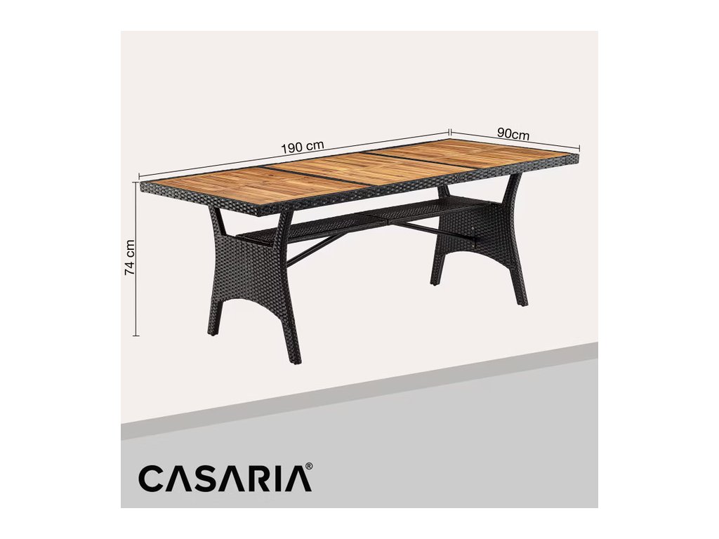 Ratanový stôl Takeo 190x90x74 cm - čierna/agát
