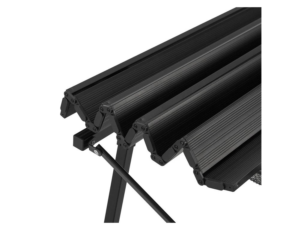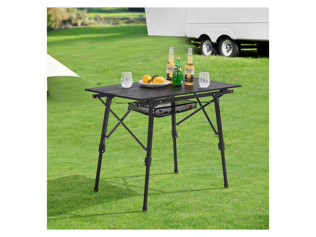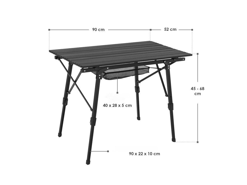 Rozkladací kempingový stôl je vybavený pripojiteľnou sieťou pod doskou stola, ktorá slúži ako ďalší úložný priestor. Je výškovo nastaviteľný od 45 do 68 cm a unesie až 30 kg. Podľa príležitosti si vždy vyberiete výšku stola, ktorá vám vyhovuje. Stôl sa dá zložiť a uložiť do tašky, aby ste ušetrili miesto. Hliníkový kempingový stôl je stabilný a ľahký zároveň, no okrem nízkej hmotnosti má aj protišmykové plastové nožičky.