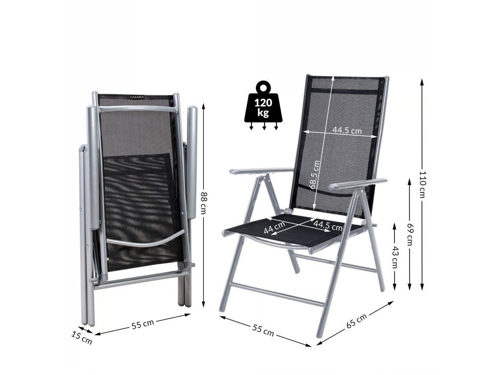 Kreslá sú dodávané už zmontované, takže ich stačí rozložiť a ihneď používať. Skladací mechanizmus umožňuje jednoduché uskladnenie mimo sezóny alebo pri potrebe uvoľniť priestor. Vďaka tomu sú kreslá praktické nielen na každodenné používanie, ale aj na príležitostné posedenia alebo sezónne využitie.