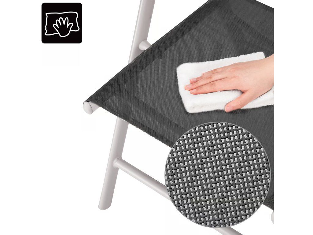 Konštrukcia je vyrobená z hliníka s práškovou povrchovou úpravou, ktorý sa vyznačuje nízkou hmotnosťou a dobrou odolnosťou voči poveternostným vplyvom. Pevnosť celej konštrukcie dopĺňajú nerezové skrutky, ktoré prispievajú k dlhej životnosti aj pri pravidelnom používaní v exteriéri. Kreslá sú stabilné, pevné a zároveň sa s nimi jednoducho manipuluje.
