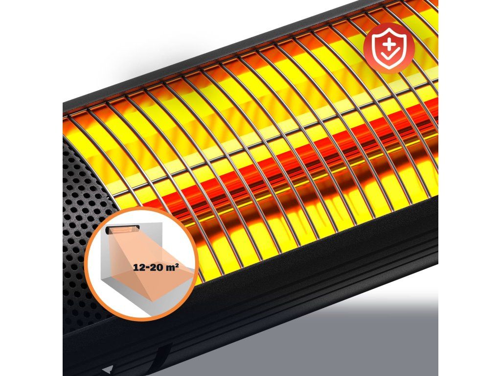 Vďaka infračervenej technológii s nízkym oslnením a vysoko účinnému širokouhlému hliníkovému reflektoru sa svetelný efekt znižuje o 85 % a zároveň sa dosahuje optimálny odvod tepla. Tento systém zabezpečuje príjemné prostredie bez rušivého svetla a zároveň efektívne rozptyľuje teplo do okolia. Bezpečnostná mriežka s malým rozostupom navyše chráni pred nechceným kontaktom so zdrojom tepla.