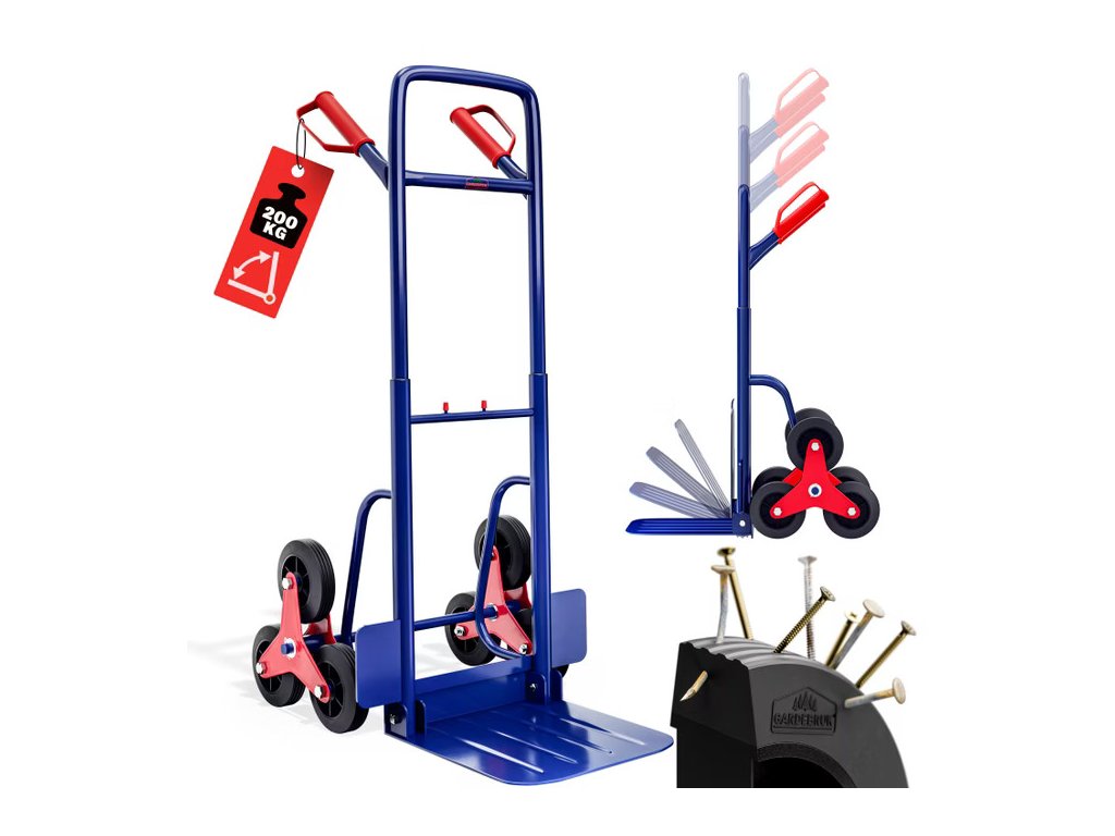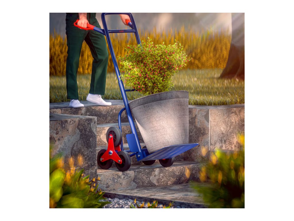 Tento špeciálny schodiskový vozík je ideálnym riešením pre domácnosti, logistiku aj remeselné práce. Vďaka hviezdicovým kolesám zvláda bez problémov prepravu ťažkých bremien hore a dole po schodoch. Robustný oceľový rám a plastové bezpečnostné rukoväte zaisťujú stabilitu a bezpečnú manipuláciu.Vlastnosti produktu: