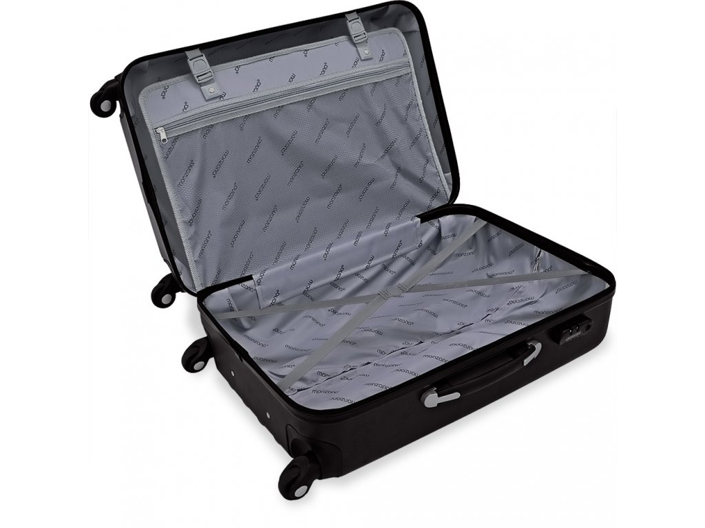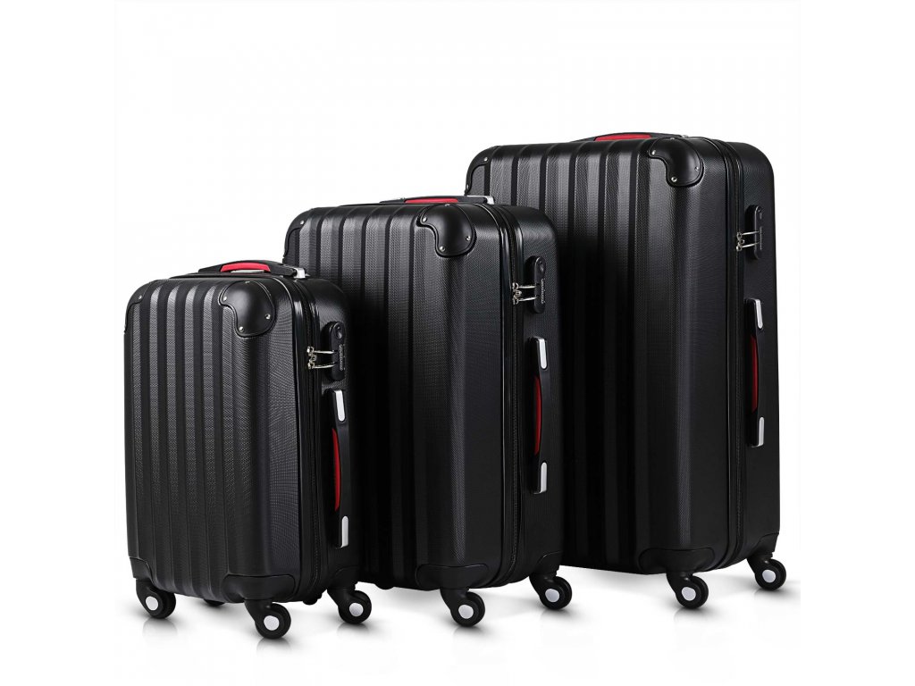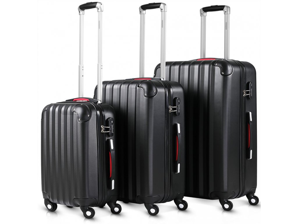 Praktická sada cestovných kufrov je dokonalým spoločníkom na cesty. Kvalitné spracovanie a množstvo možností balenia ponúka vysoký komfort cestovania. Vnútro s podšívkou je možné rozdeliť a má aj napínacie pásy a praktickú sieťovanú priehradku. Tieto kufre sa vyznačujú vysokou odolnosťou a nízkou hmotnosťou. Kufríky je možné pohodlne presúvať pomocou pogumovaných koliesok (otočných o 360°), robustných teleskopických rukovätí a tvarovaných rukovätí (horná a bočná).