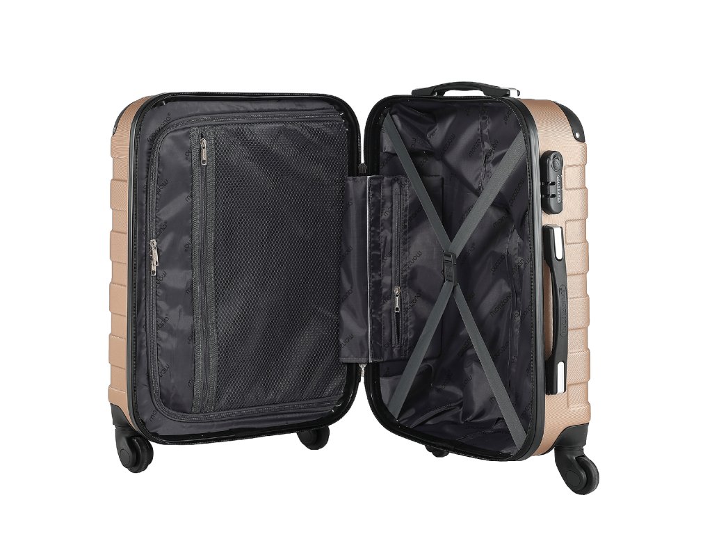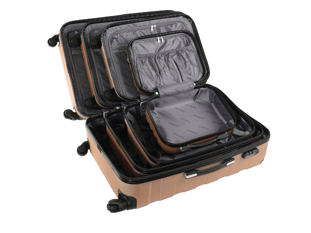 Set cestovných kufrov je navrhnutý na bezpečné a prehľadné uloženie vecí počas cestovania. Vďaka rôznym veľkostiam kufrov si vždy zvolíte ten správny na víkend, služobnú cestu aj dlhú dovolenku. Pevné telo z ABS plastu poskytuje ochranu pred nárazmi a pritom zostáva ľahké na manipuláciu. Vnútorné fixačné popruhy pomáhajú udržať oblečenie aj ďalšie predmety bezpečne na svojom mieste.
