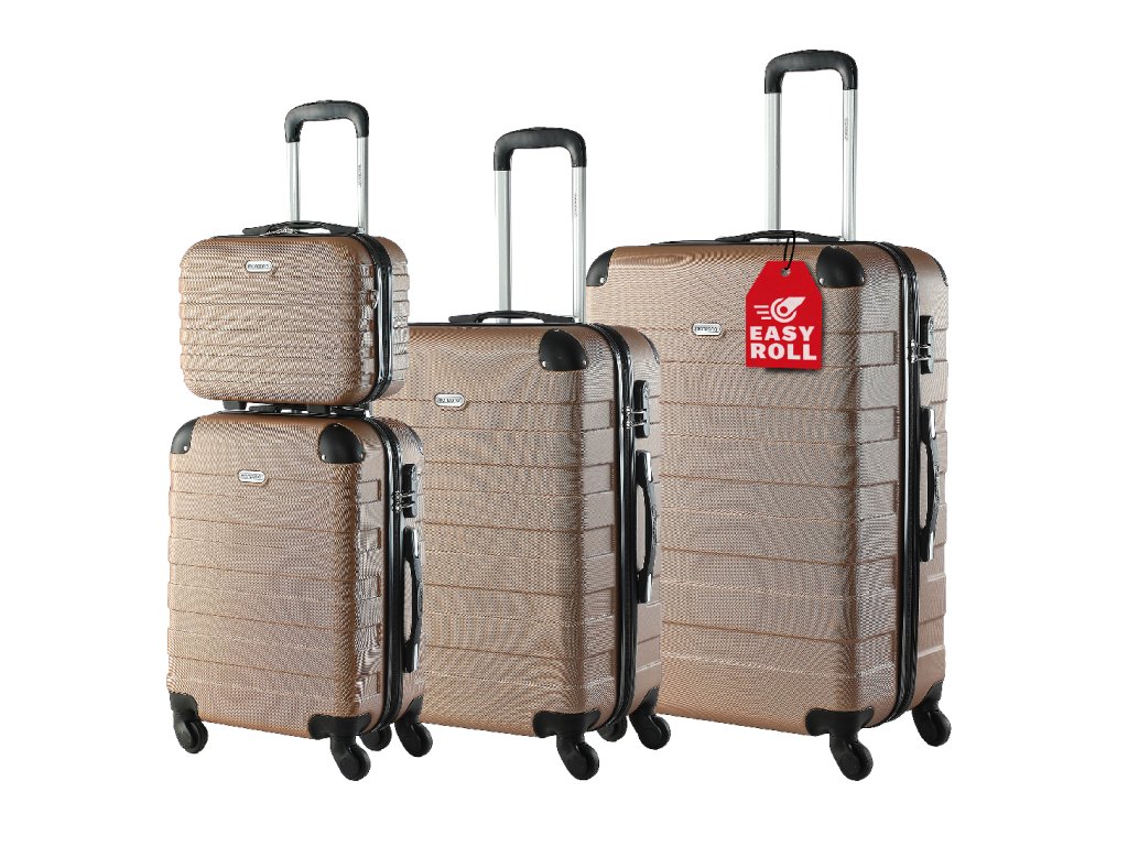 - Tri veľkosti kufrov a kozmetická taška pre všetky typy ciest
