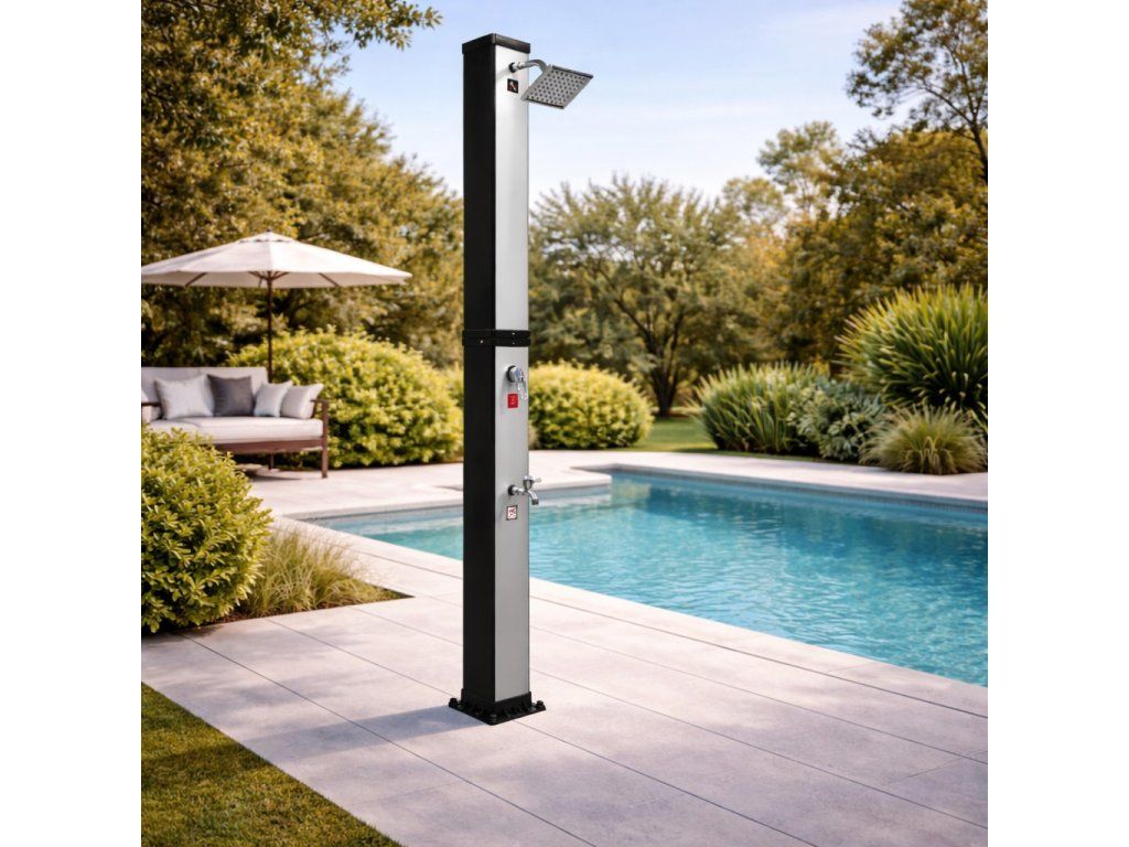 Solárna sprcha je ideálnou voľbou pre každého, kto chce mať pohodlné sprchovanie priamo v záhrade bez nutnosti elektriny. Využíva slnečné žiarenie na ohrev vody, čím šetrí náklady a zároveň je šetrná k životnému prostrediu. Vďaka elegantnému dizajnu zapadne ku každému bazénu či terase.
