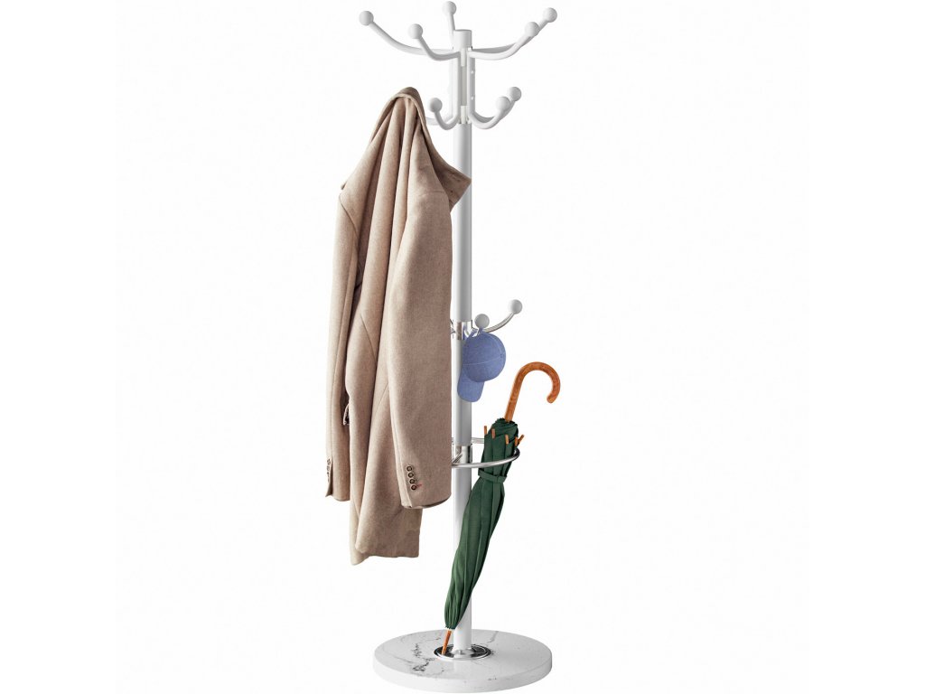 Štýlový vešiak využíva priestor v chodbe, kancelárii alebo malej miestnosti. 14 háčikov na troch úrovniach ponúka dostatok úložného priestoru pre bundy, kabáty alebo klobúky. Okrem toho má vešiak v spodnej časti integrovaný stojan na dáždniky. Vo vrchnej časti sa nachádza 10 háčikov ktoré je možné otáčať 360 stupňov. V strede sú ďalšie 4 háčiky ktoré deti v tejto výške obzvlášť ľahko dosiahnu. Ťažká mramorová základňa s unikátnym zrnom má priemer 37 cm a výšku 2 ,4 cm a zaisťuje stabilný stojan. Vešiak je vysoký 175 cm a unesie až 35 kg. Dá sa jednoducho zložiť a ihneď použiť.
