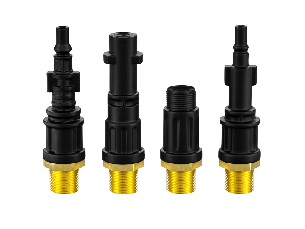 - 3 adaptéry s mosadznými závitmi kompatibilné s takmer všetkými štandardnými vysokotlakovými čističmi