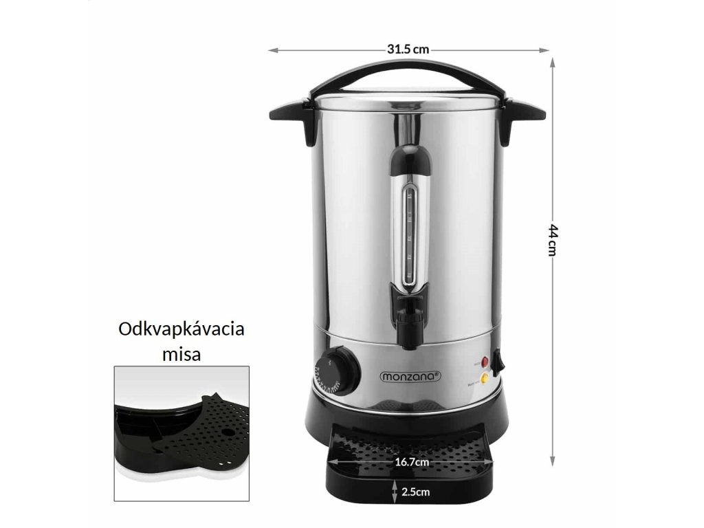 Vysokokvalitný varič na víno 950 W s celonerezovým krytom v gastro kvalite, termostatom a praktickou odkvapkávacou miskou. Stupnica úrovne naplnenia ukazuje, koľko šálok je k dispozícii. Pomocou termostatu môžete presne určiť, aký teplý / horúci by váš nápoj mal byť (30-110 stupňov). Kanvica na varené víno je obzvlášť bezpečná a chránená vďaka veku z nehrdzavejúcej ocele s uzamykacím zariadením. Varič na varené víno ponúka obzvlášť bezpečnú manipuláciu. Extra široká základňa variča na víno poskytuje vysokú stabilitu. Sami sa rozhodnite, kedy si chcete horúci nápoj zohriať alebo len udržiavať teplý. A užívajte si príjemné chvíle s horúcim nápojom v chladnom období.