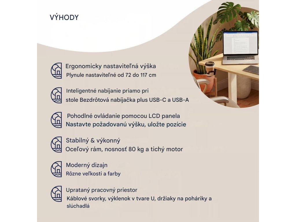 Výškovo nastaviteľný stôl prináša zdravší a flexibilnejší spôsob práce v kancelárii aj domácom prostredí. Elektrické nastavenie výšky pre prácu v sede aj v stoji Integrované...