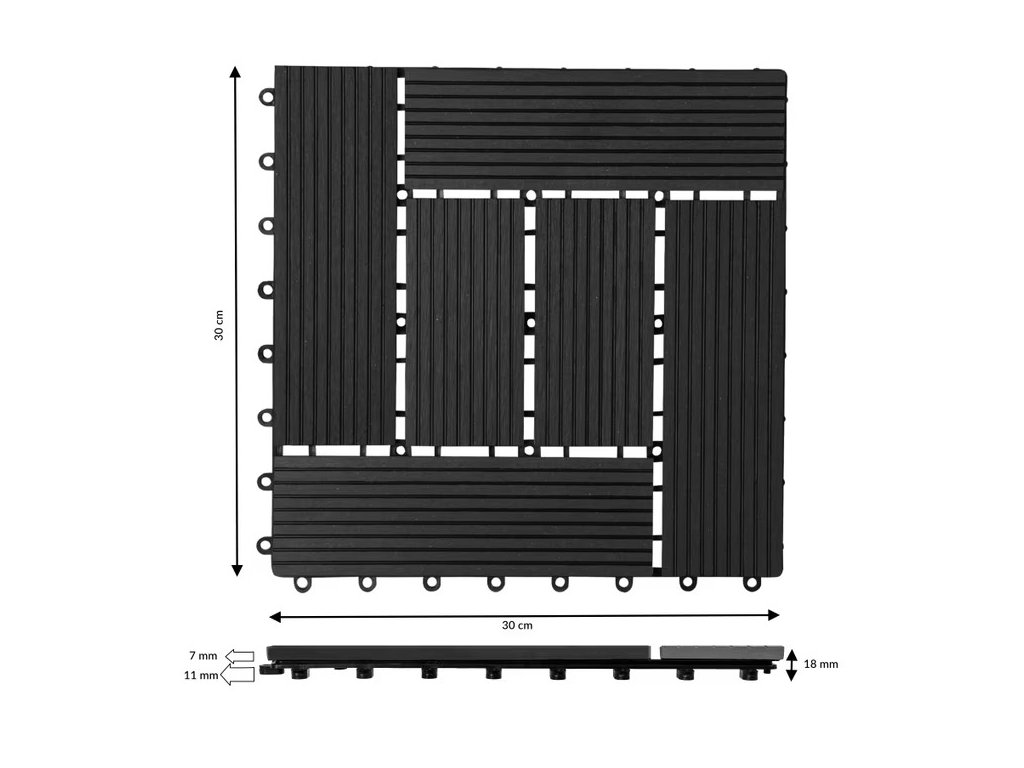 WPC dlaždice - sada 11 ks, 30x30 cm mozaika - antracit