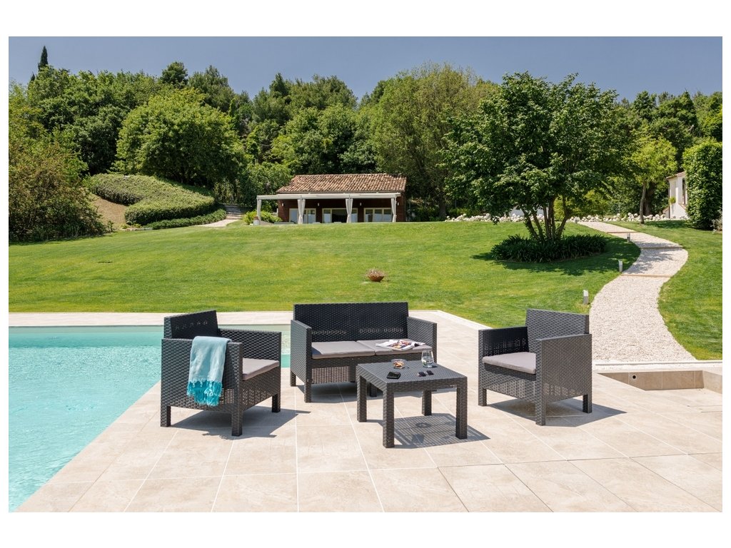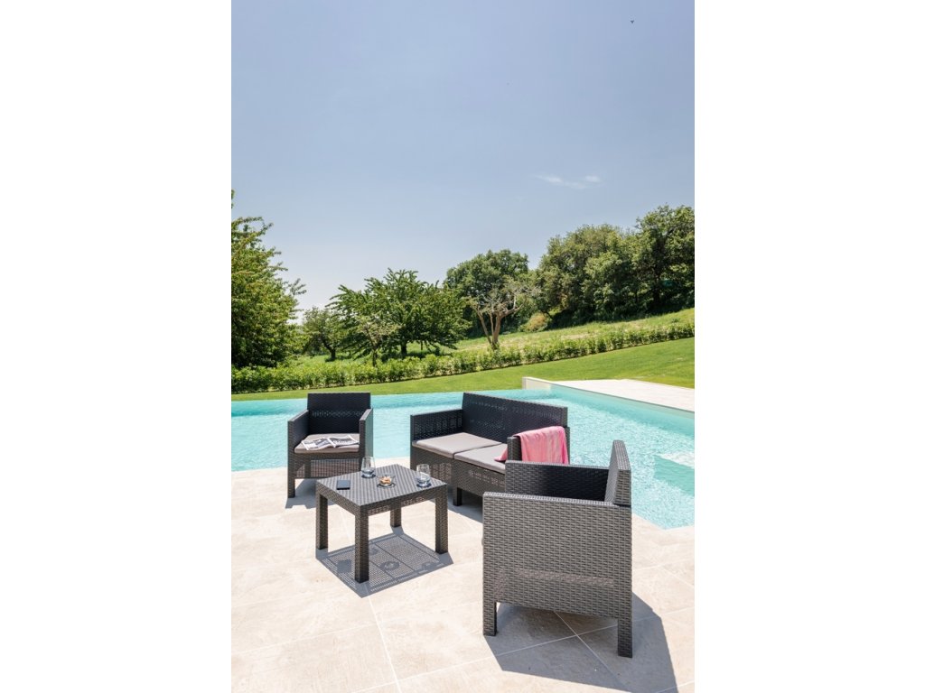 Záhradná zostava v elegantom grafitovom prevedení je ideálna do exteriéru či terasy