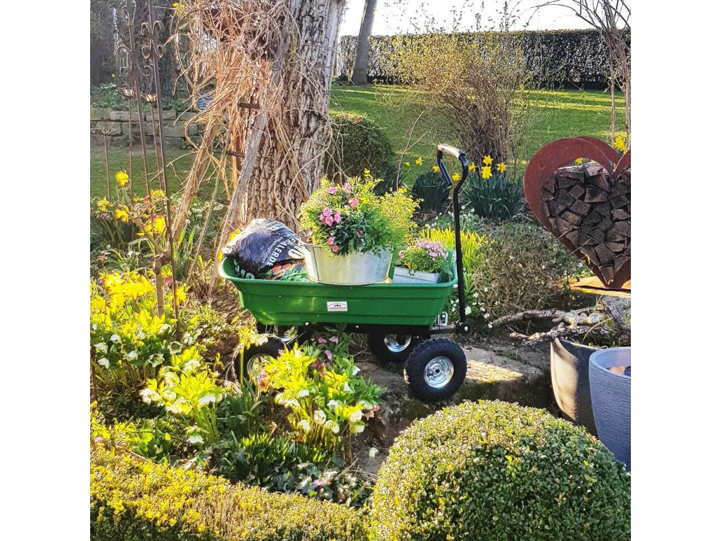 Pomocou záhradného vozíka ľahko prepravujte lístie, zeminu, rašelinu, hnojivo, drevo atď. Riadiaca náprava a vzduchom plnené gumové pneumatiky uľahčujú manipuláciu s vozíkom. Vrcholom je praktická funkcia naklápania, takže náklad možno bez námahy vyložiť na požadované miesto.
